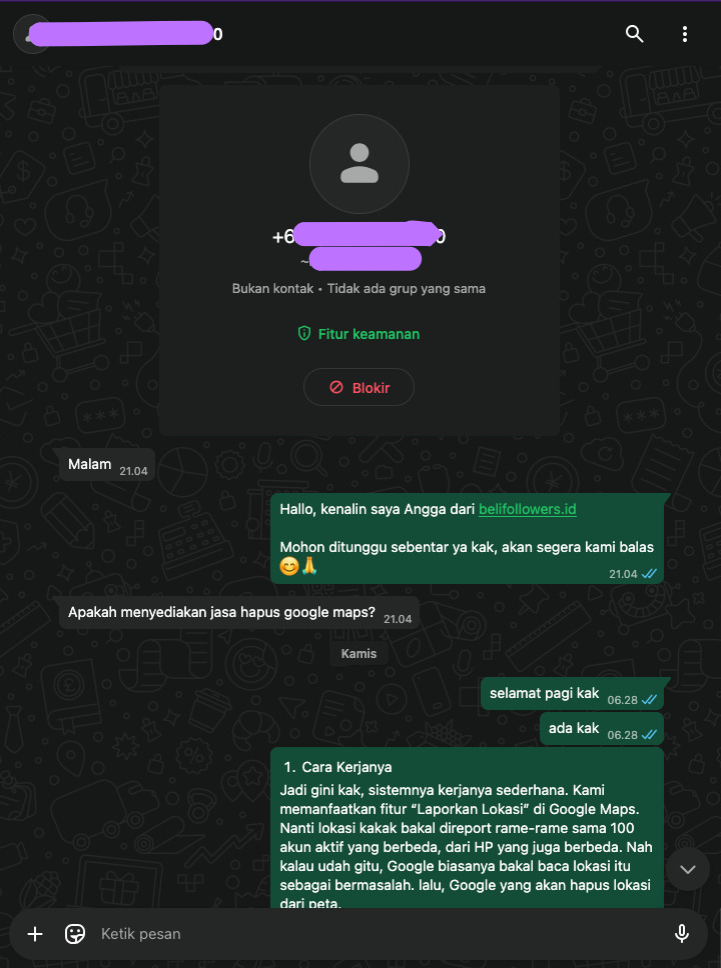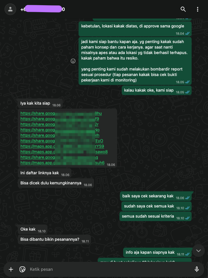 Tujuannya supaya sistem Google mengenali lokasi itu sebagai bermasalah lalu menghapusnya. Semua pekerjaan tercatat di dashboard, pemilik bisnis yang memesan layanan ini bisa melihat siapa yang sedang melapor, tahapnya apa, dan bukti screenshot yang kamu kirim.